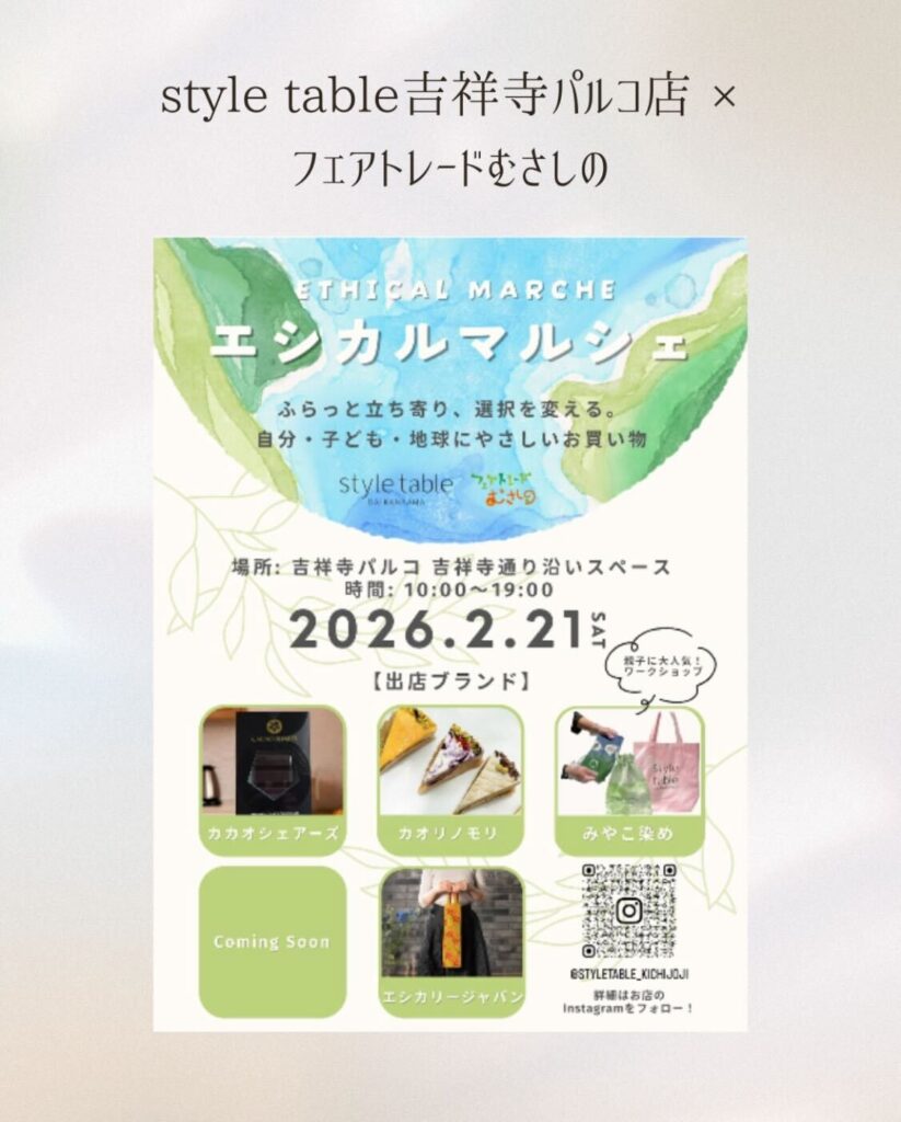 style table 吉祥寺PARCO店 × フェアトレードむさしの主催のマルシェです。